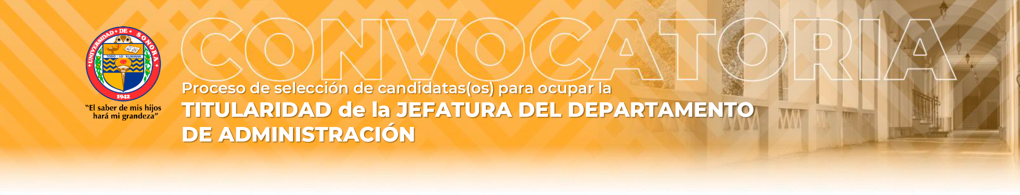 Al personal académico y a estudiantes del Departamento de Administración, a participar en el PROCESO DE SELECCIÓN DE CANDIDATAS(OS) PARA OCUPAR LA TITULARIDAD DE LA JEFATURA DEL DEPARTAMENTO DE ADMINISTRACIÓN para el periodo que comprende del 8 de diciembre de 2025 al 7 de diciembre de 2030 el cual se desarrollará bajo el siguiente