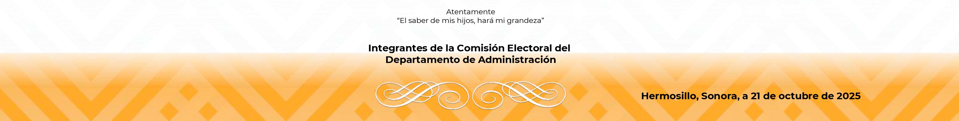 Con fundamento en los artículos 18 fracción II y 31 fracción I de la Ley Número 169 Orgánica de la Universidad de Sonora 19 fracción IV, 29 y 31 del Estatuto General de la Universidad de Sonora, así como 44 y 45 del Reglamento General de Elecciones de la Universidad de Sonora, en virtud de que el periodo del actual titular de la Jefatura del Departamento vence el próximo 4 de diciembre de 2025 la Comisión Electoral nombrada por el Colegiado Permanente de Asuntos Electorales del Colegio Universitario